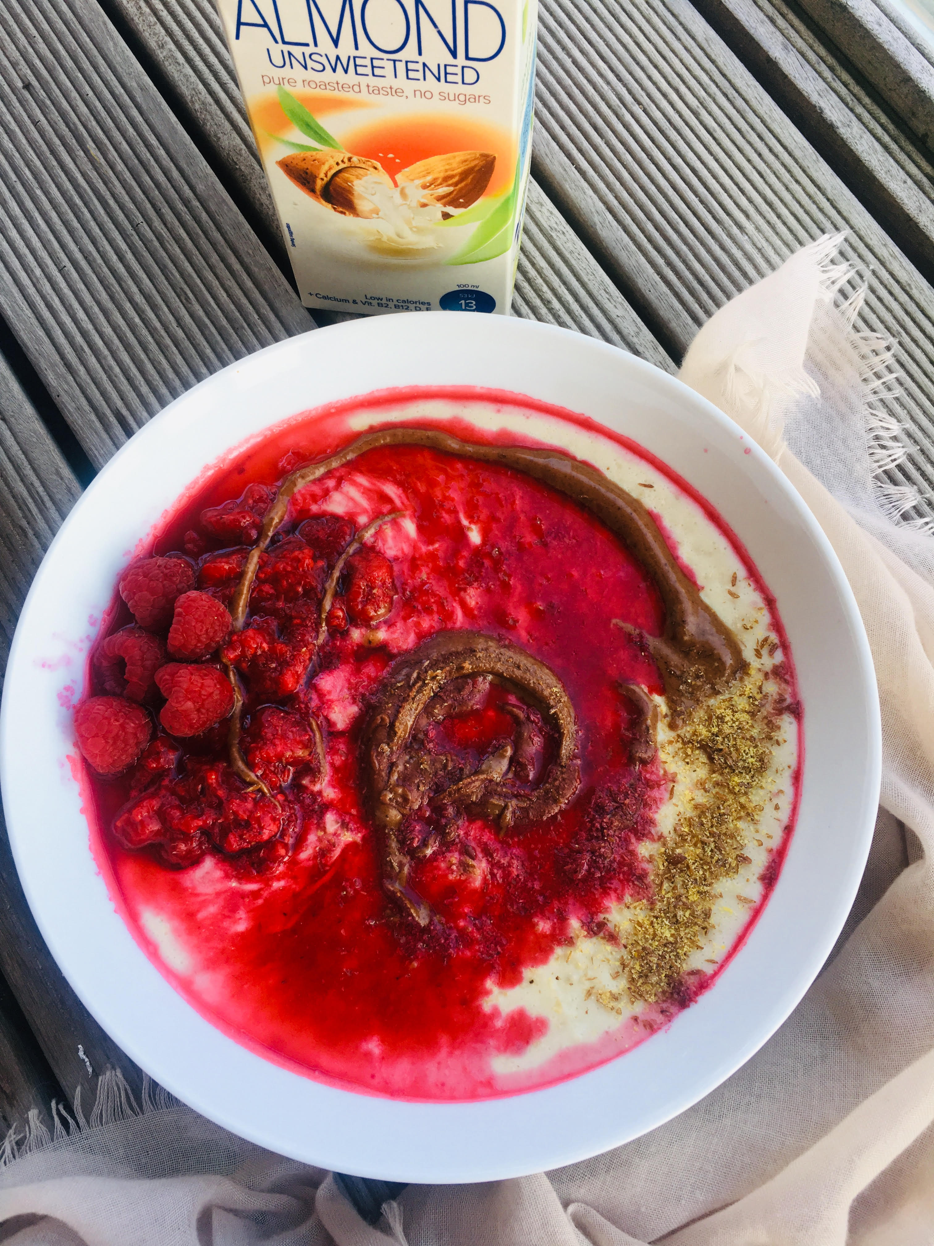 When I moved to this country, I had a porridge obsession as I needed something warm to get me out of the door in the morning. However, what was missing from my porridge was the color and the fruits. Therefore, I started to stew my fruits and will share a variety of fruits that I play with. Had shared the blueberry version last week and here is the raspberry version <3. I also sprinkle flax seeds which is a high source of omega 3 and homemade chocolate peanut butter porridge for the protein. This recipe here is a plant based version.